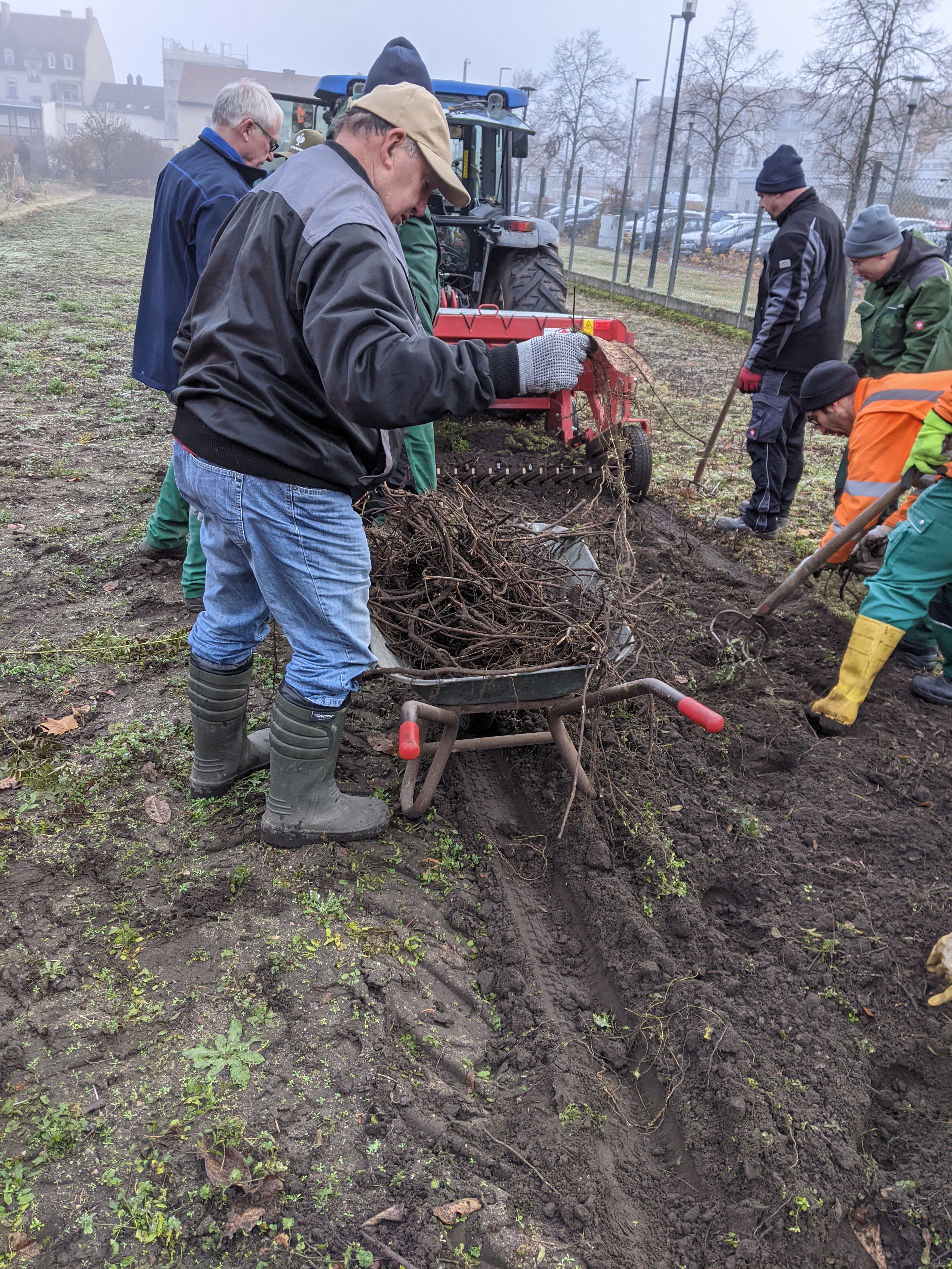 Am vergangenen Mittwoch, 10. November, war es wieder soweit! Die zweite Hälfte des Süßholzfeldes in der Heiliggrabstrasse wurde geerntet. Bei bestem Wetter konnte wieder in kurzer Zeit einiges an Süßholzwurzeln aus dem Boden geholt werden.